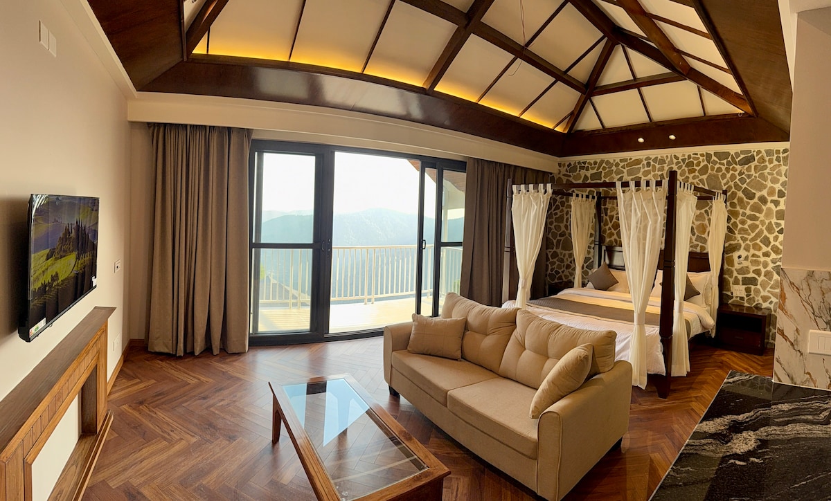 A collection of four individually styled cottages nestled in the serene hills of Shimla. Designed for families and friends seeking a harmonious blend of privacy and togetherness Four Spacious Rooms generously sized, thoughtfully designed to provide ample space and comfort. Private Bathrooms featuring a luxurious bathtub for ultimate relaxation Mini Kitchenette Stunning Views: Wake up to breathtaking views of the surrounding hills and lush greenery, offering a picturesque backdrop to your stay.