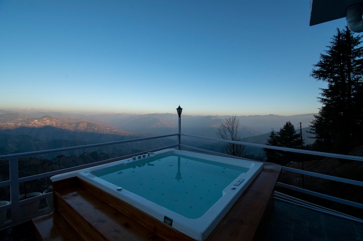 2卧室传统Kothi,带户外按摩浴缸和山谷景观
