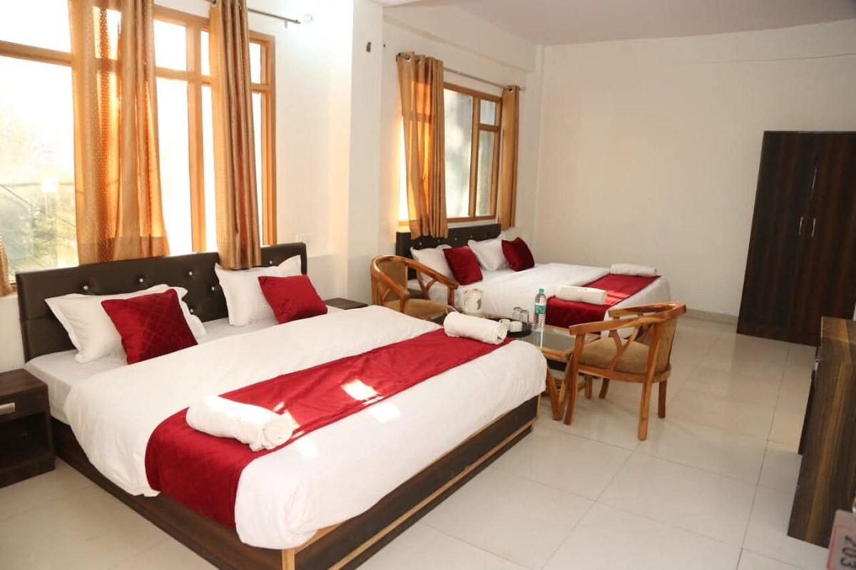 Experience hotel-like comforts in a tranquil setting! Located near Shimla, our retreat is nestled in a quiet part of town, surrounded by lush trees. Here's what we offer: En-suite bathrooms with 24/7 hot & cold water. Daily housekeeping service. On-site restaurant. Efficient laundry service. Complimentary WiFi & parking. Close to top-notch hiking trails. Patio with great sunset views Dive into a luxurious escape, combining nature's calm with modern comforts. Welcome to your serene hideaway!