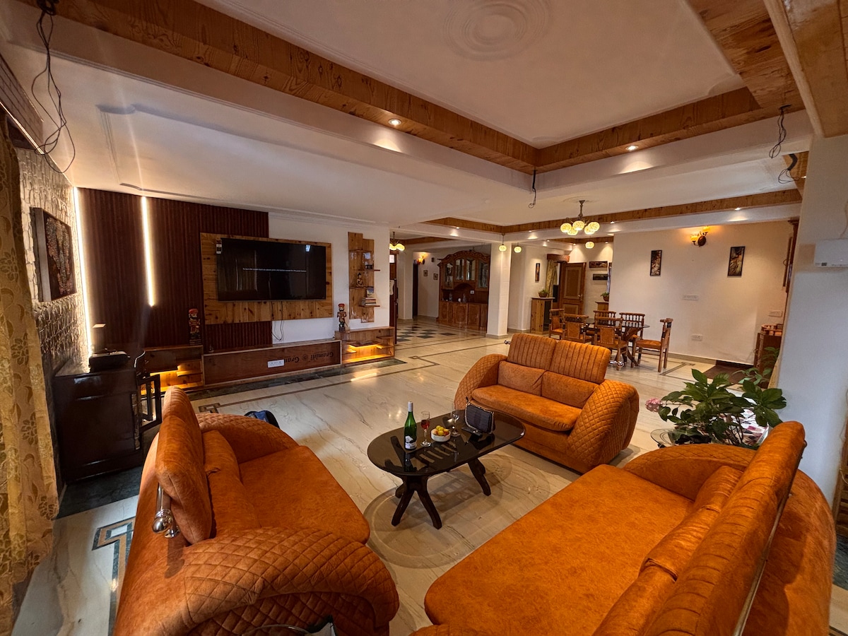 A spacious, peaceful 3BHK retreat just 10 minutes from Christ Church & Mall Road. Designed for families and responsible travelers seeking comfort, privacy, and breathtaking 180° mountain views. It features warm wooden interiors, panoramic Himalayan views, and a calm residential setting. Comfortably hosts 6 guests. High-speed WiFi is available. Ideal for those who value peace, privacy, and a premium hill-station experience. Loud parties and gatherings are strictly not permitted.