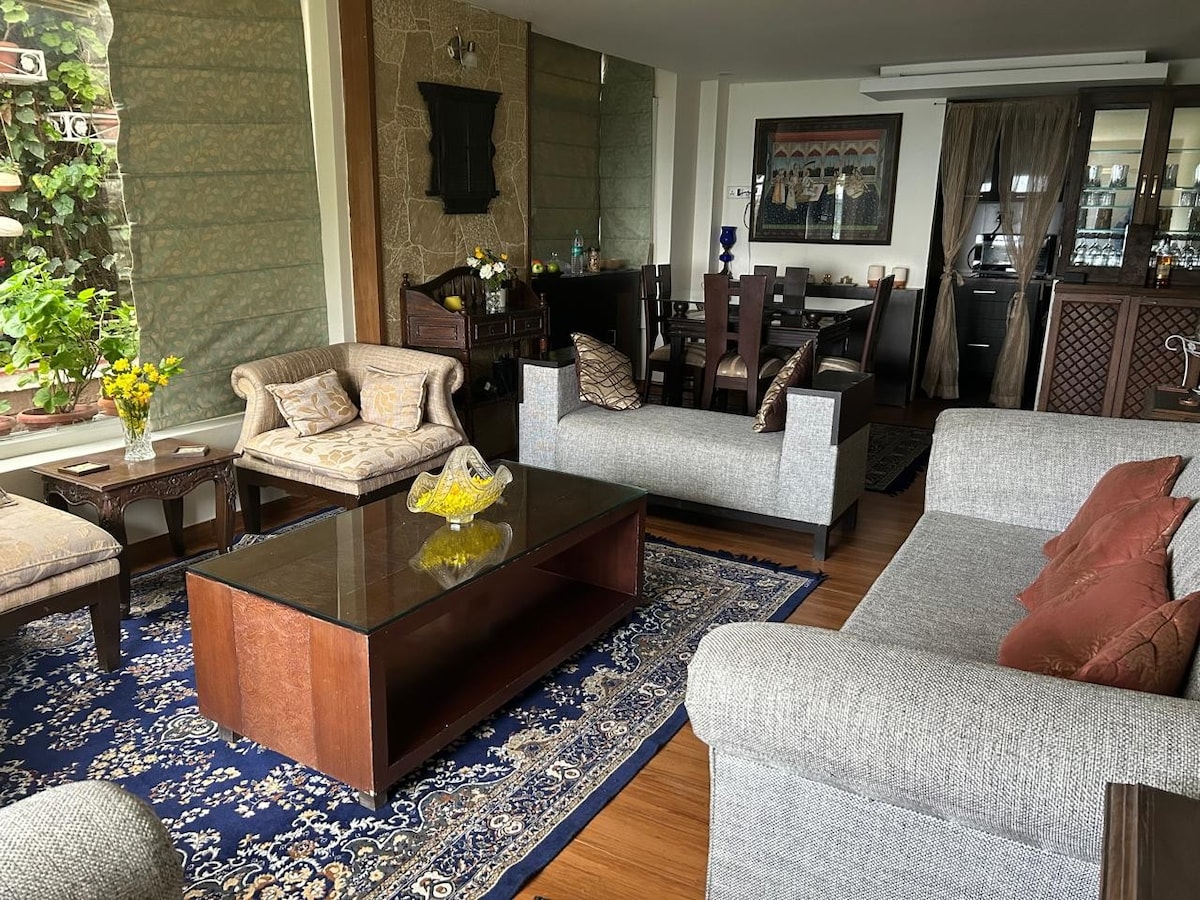 Govt Approved Stylish and Modern Apartment 3 Bedrooms, 2 Bathrooms and Living Room with open Kitchen offers stunning Shimla view. Conveniently located in a green area 15 min walk to Mall Road and 10 min to Jakhoo Temple. Newly Built Ultra Luxury Drive in with Parking & Lift Centrally Heated Air-conditioners Bed Warmers Customised Furniture High Speed Internet, HD SmartTV, Netflix Kitchen with Refrigerator, Hood, Kettle, RO Filter, Induction, Cooking Gas Bosch Washing Machine & Dryer