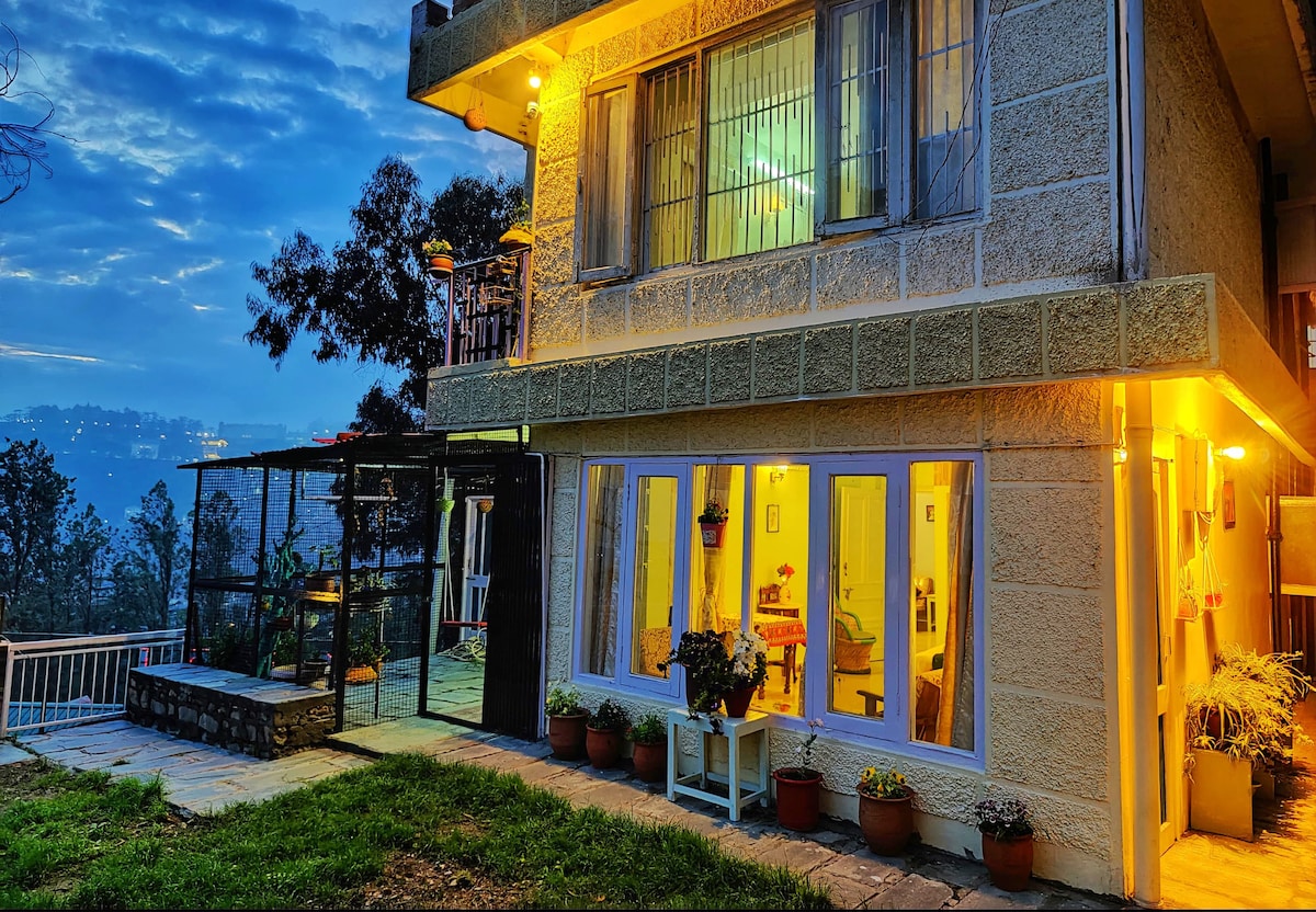 The Boho Nest is a 1000sqr.ft. Fully Furnished Homestay with a Private Balcony facing Mountains with Unobstructed View. Our homestay features a cozy 2 BHK property that effortlessly blends traditional heritage charm with bohemian aesthetics. Each room is tastefully decorated, providing a warm atmosphere. It is located just 20 Minute drive from Mall Road.