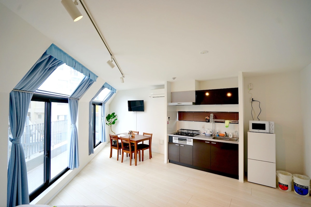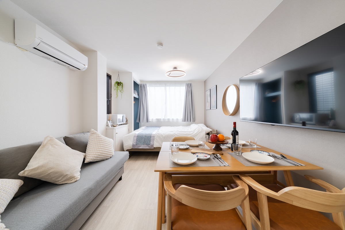 Discover authentic Tokyo in our spacious, family-friendly studio "Happy House 1C" in a quiet and safe residential area of Sangenjaya. ✨ Sleeps 4 with two double beds and a sofa bed. Features a full kitchen, high-speed Wi-Fi, and a powerful clothes dryer, ideal for longer stays. Just a 7-minute walk to the station and a quick 5-minute train ride to Shibuya. Surrounded by local shops, cafés, and restaurants, it’s perfect for families, couples, or friends seeking a stylish home base. 🌸