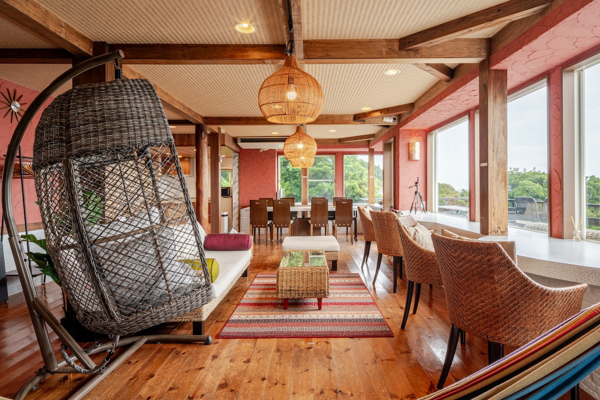 The warmth of wood can be felt at Atagawa Moon Lodge, which makes abundant use of solid cedar wood. Atagawa is a mecca of hot springs with numerous wellsprings. A 15min drive from the inn is a beach where you can enjoy beach activities. Located in the center of Higashi Izu, it is the perfect base for sightseeing in Izu Kogen, Ito, and Shimoda! On nights with a full moon, you may be able to see the fantastic moon road created by the moonlight illuminating the ocean from your room.