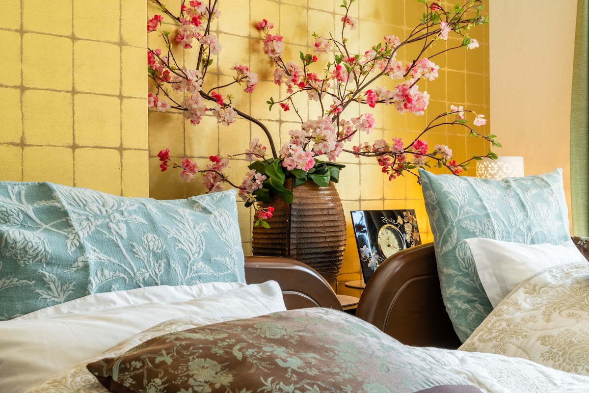重新开业!享受特别的京都住宿体验! 我们的宽敞空间最多可容纳3位客人,且费用相同。位于京都市中心,交通非常便利。距离最近的车站步行仅需5分钟,新鲜超市步行5分钟,便利店步行2分钟,锦市场步行8分钟,所有设施都在步行范围内。您可以在设备齐全的厨房内自行烹饪,也可以享受附近店铺的外卖或配餐服务。此外,周围还有众多吸引人的餐馆和时尚的商店。 为了消除旅途疲劳,我们特别注重舒适的睡眠环境,提供了由日本床具公司——宫内厅御用品牌——生产的高品质大床。同时还有专门的檜木浴缸。洗手台和卫生间各有两个,并配有带干燥功能的洗衣机和衣橱,非常适合长期入住。 完全包租的私人空间,让您安心放松,尽享京都历史的独特魅力。进入屋内,您会看到西阵织的拉门和祖父这位版画师的作品。在这里度过一个特别的京都假期吧! 非常抱歉,京都市住宿税请您在入住当天以现金支付。 感谢您的理解与配合。