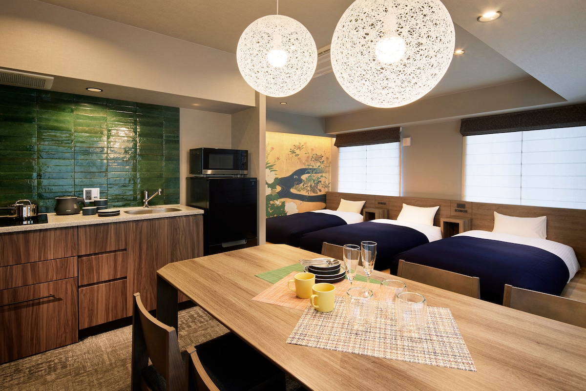 整套公寓只归1组/位于京都中心/车站步行6分钟/配备Wi-Fi/可让6位房客入住/高级优雅的现代民宿