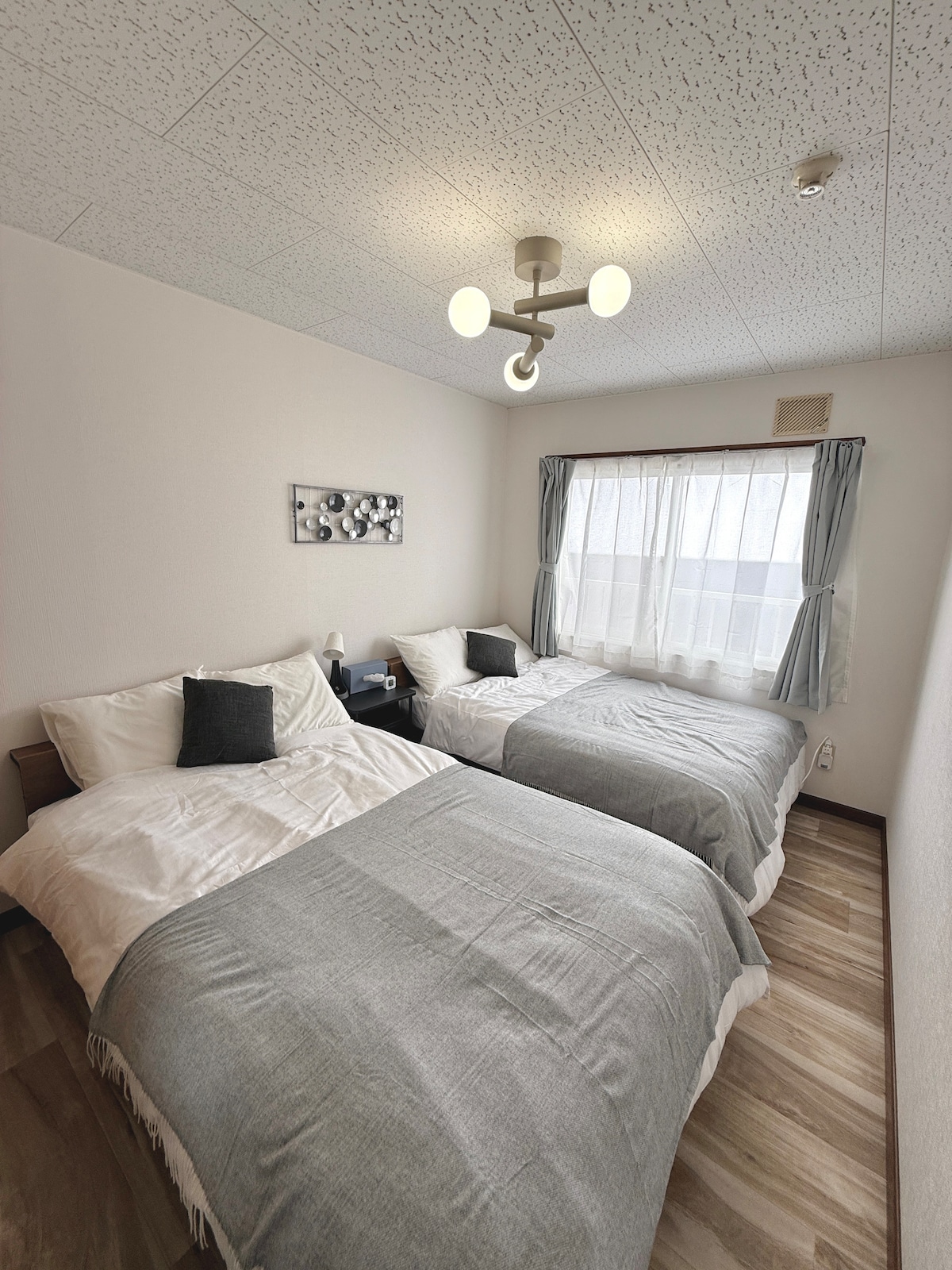 This modern 2-bedroom apartment (4 double beds) in Kita Ward, Sapporo, was fully renovated in winter 2023. It offers a clean and quiet space for up to 8 guests. Just a 5-minute walk to Kita 34jo Subway Station, 15 minutes by car to Sapporo Station. A convenience store and Toyota Rent-a-Car are within 1 minute on foot. Free parking is available for 2 cars in front of the building. Check-in is from 3:00 PM, check-out by 11:00 AM. The property is completely non-smoking, including e-cigarettes.