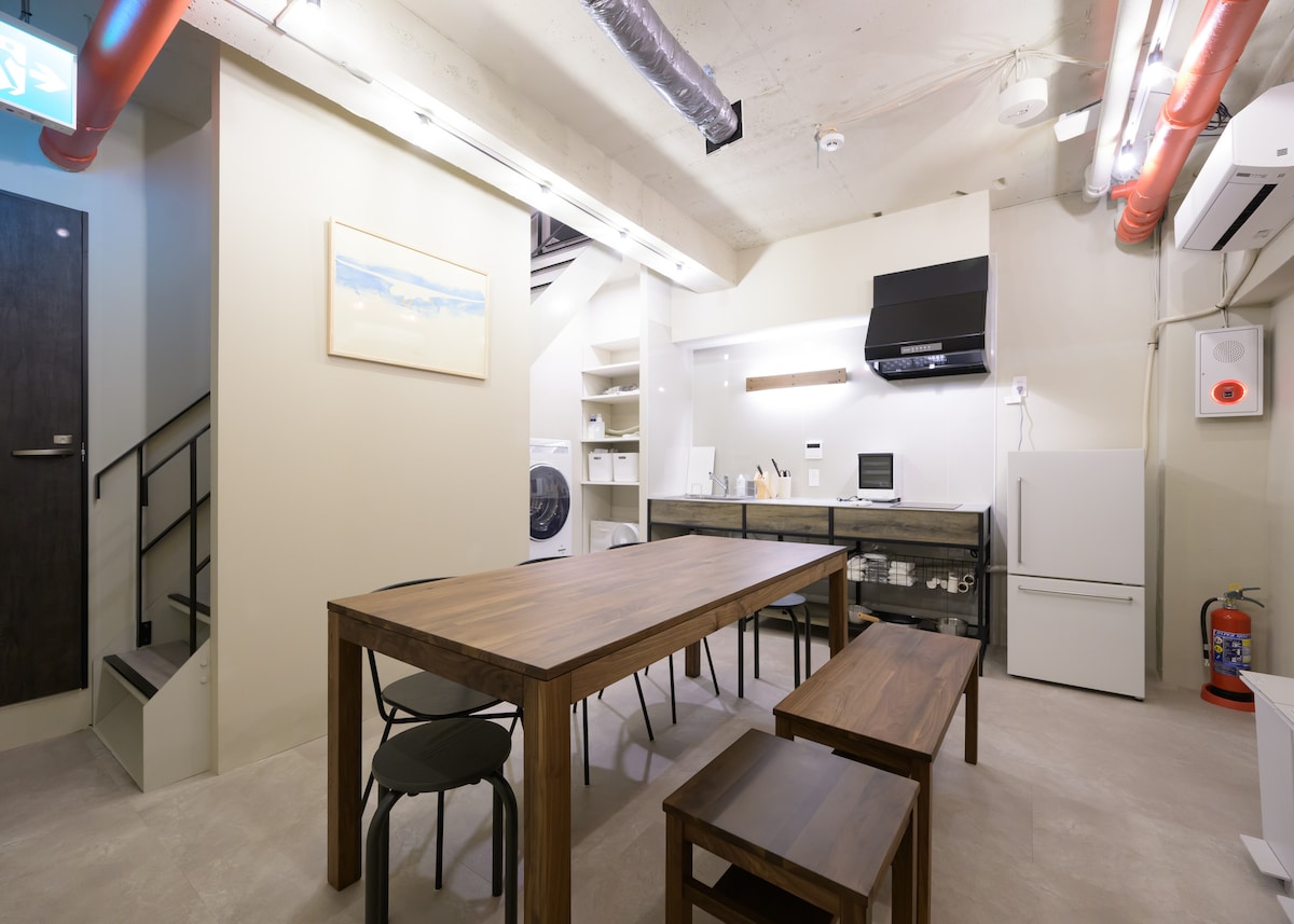 入住這間位處中心地段的房源,全家到哪都方便。 房內配置兩張加大雙人床,適合家人、朋友一同入住。 床距舒適,動線保有獨立空間。最多可住5人。 開放式廚房備有電磁爐、鍋具與碗盤,想吃家常菜、日式簡單料理都不是問題。 吧台連接生活與用餐空間,不論是一杯早晨咖啡,還是一頓晚餐,一切都剛剛好。 洗手台與衛浴獨立設計,幾個人一起住也能保有自己的步調。 提供藍芽音響,在日本的夜晚聽著音樂、泡個熱水澡是旅途中最放鬆的片刻。 房內備有投影機,可輕鬆連接常用的數位串流平台。 洗衣機、空氣清淨機、熨斗與寬敞衣櫃一應俱全,你需要的,我們都準備好了。 空間剛剛好,適合一個人靜靜地在吧台工作,也適合和朋友或家人一起住上幾天。 自在相處,各自舒適。