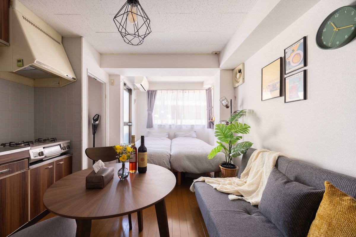 Experience the feel of a standard-sized Tokyo apartment in this deluxe studio for 2. Enjoy restful nights on a queen-sized bed and a functional layout ideal for remote work. Whether you're balancing work and wellness or simply unwinding, this space is a great urban sanctuary.