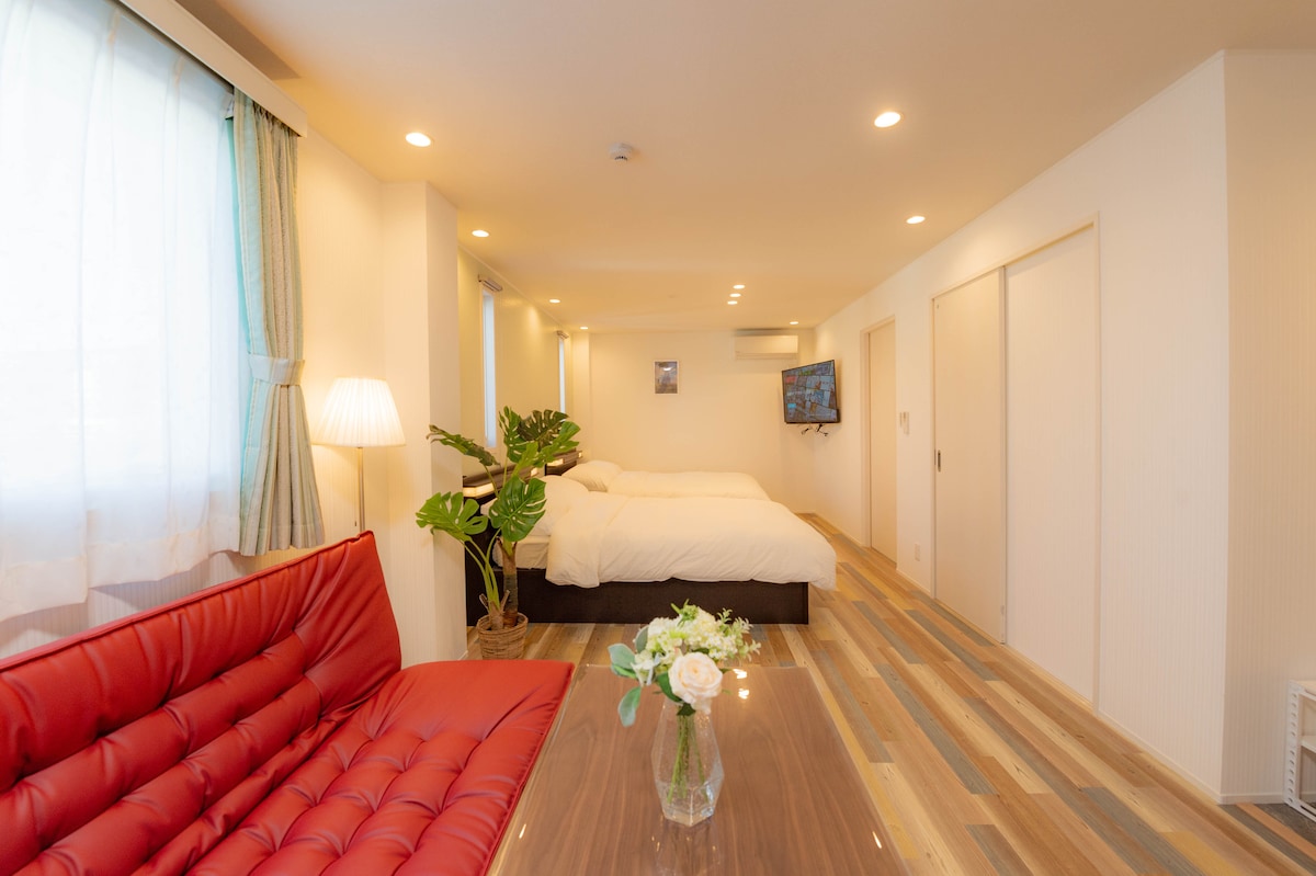 入住這間位處中心地段的房源,全家到哪都方便。 房內配置兩張加大雙人床,適合家人、朋友一同入住 床距舒適,動線保有獨立空間。最多可住5人 開放式廚房備有電磁爐、鍋具與碗盤,想吃家常菜、日式簡單料理都不是問題 吧台連接生活與用餐空間,不論是一杯早晨咖啡,還是一頓晚餐,一切都剛剛好。 洗手台與衛浴獨立設計,幾個人一起住也能保有自己的步調 提供藍芽音響,在日本的夜晚聽著音樂、泡個熱水澡是旅途中最放鬆的片刻。 房內備有投影機,可輕鬆連接常用的數位串流平台 洗衣機、空氣清淨機、熨斗與寬敞衣櫃一應俱全,你需要的,我們都準備好了 空間剛剛好,適合一個人靜靜地在吧台工作,也適合和朋友或家人一起住上幾天 自在相處,各自舒適。