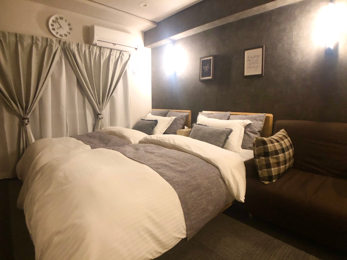 新宿涩谷附近/距离车站步行6分钟/1-2.5人/安静的市中心/沙发+大床/东京网吧