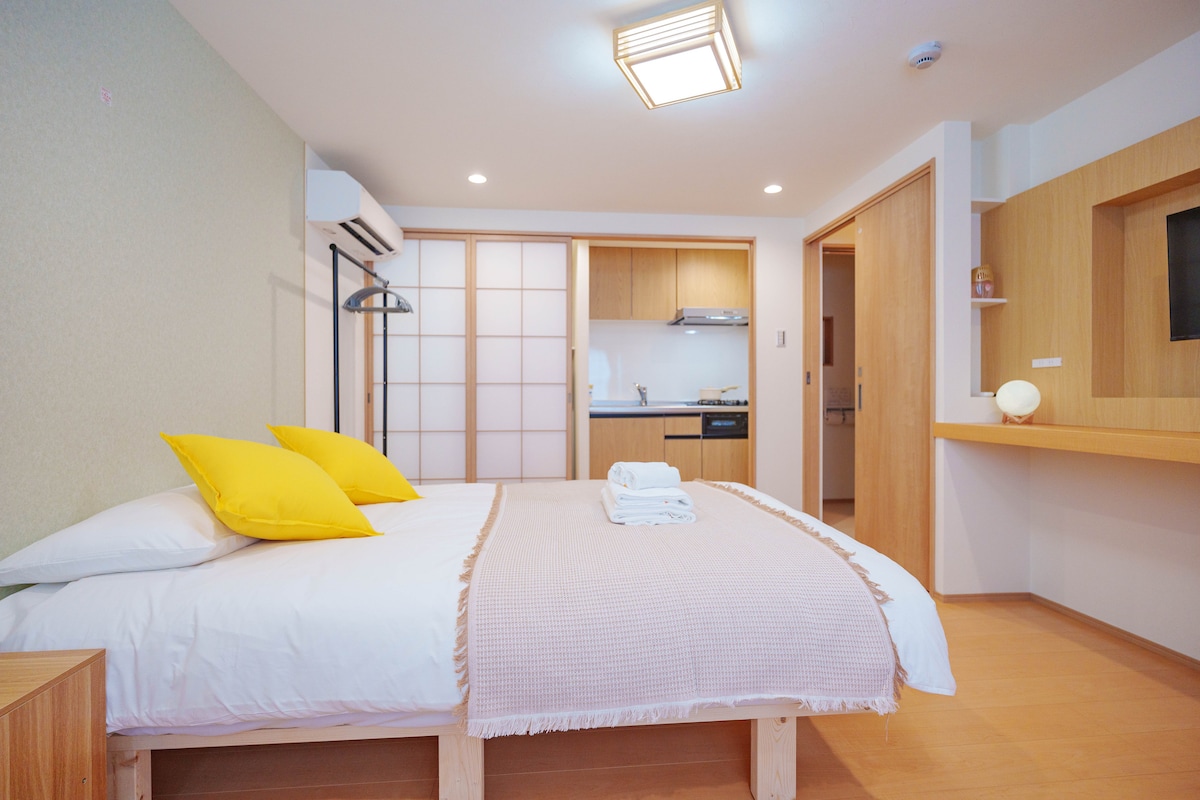 Experience the feel of a standard-sized Tokyo apartment in this deluxe studio for 2. Enjoy restful nights on a queen-sized bed and a functional layout ideal for remote work. Whether you're balancing work and wellness or simply unwinding, this space is a great urban sanctuary.