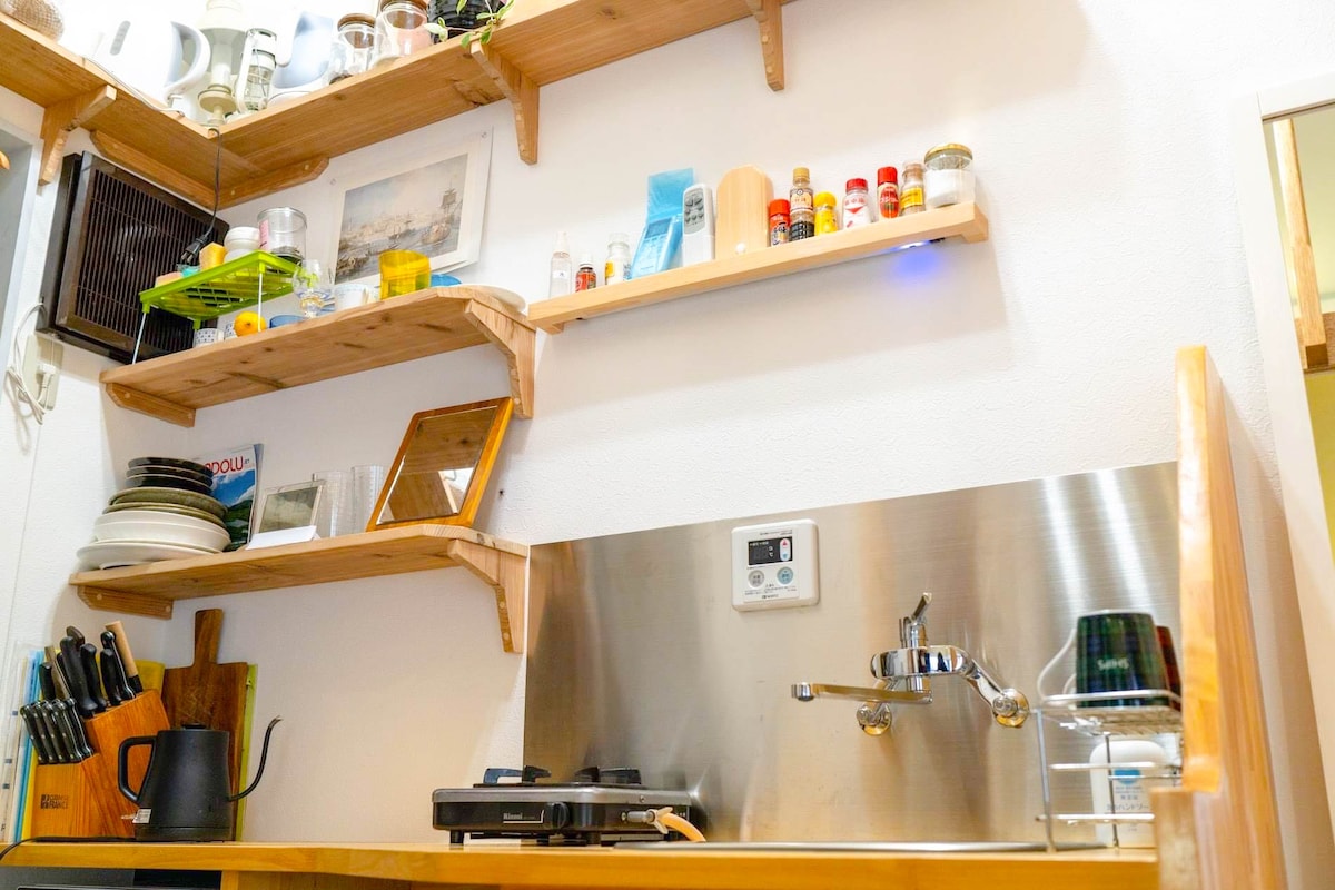 Discover our peaceful neighborhood just minutes from central Tokyo. Stroll through Okinawa Town with its cozy alleys and authentic local dishes, or relax in a traditional sento bathhouse right around the corner. Despite its nostalgic Showa-era charm, you’re just moments from Shinjuku, Shimokitazawa, and Koenji. Everyday essentials like konbini, laundromats, and ATMs are within a 5-min walk. Fresh bedding is prepared before each stay, and the 17 m² room (21 m² with loft) is ideal for 3-4 guests.