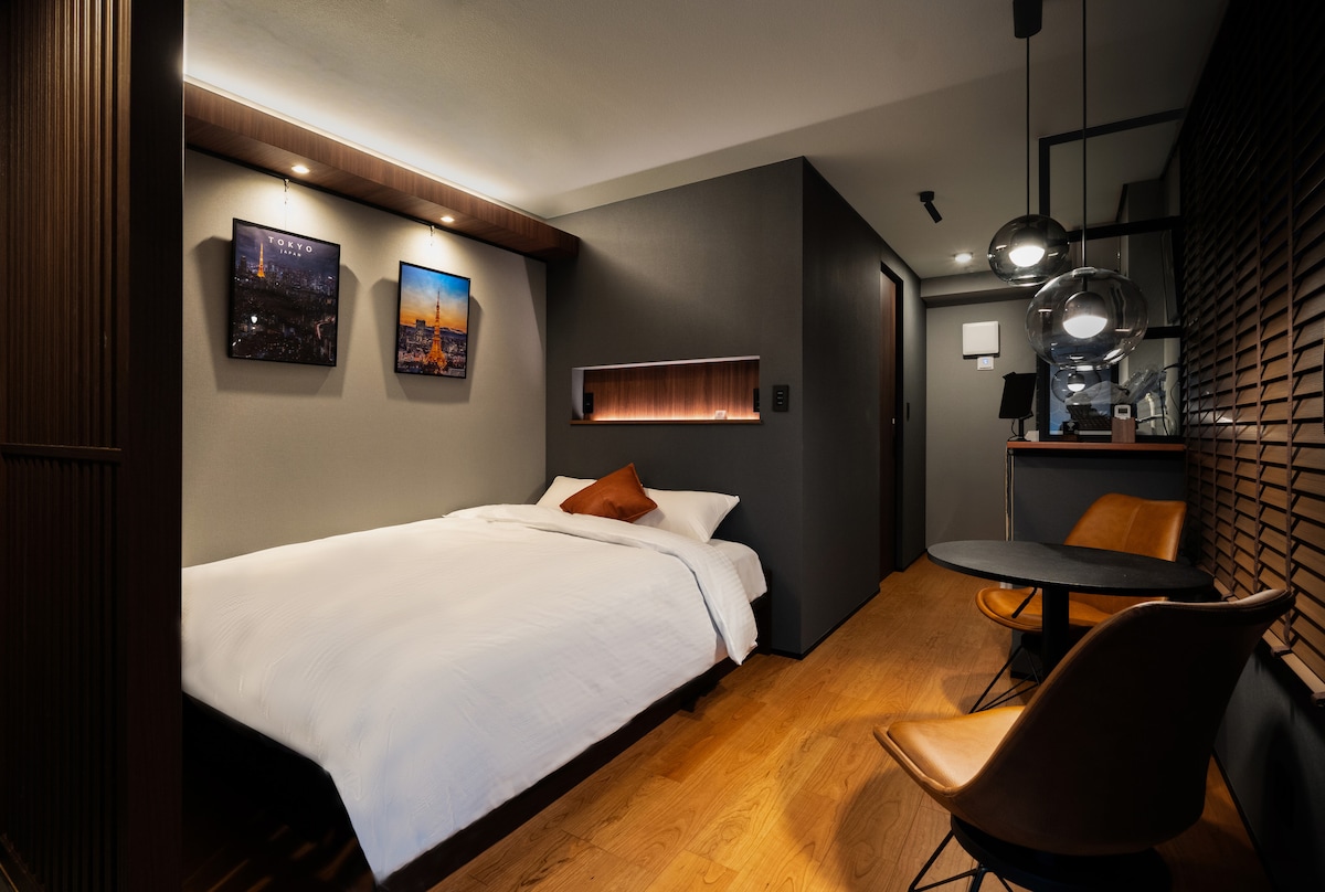 — Stylish & Sophisticated Dark-Toned Style Inspired by the warmth of a dark-toned café, this room features Japanese-style wooden latticework that sets a tranquil, refined mood. Thoughtfully accented with leather furnishings, it offers a stylish retreat to unwind and recharge after a long day.