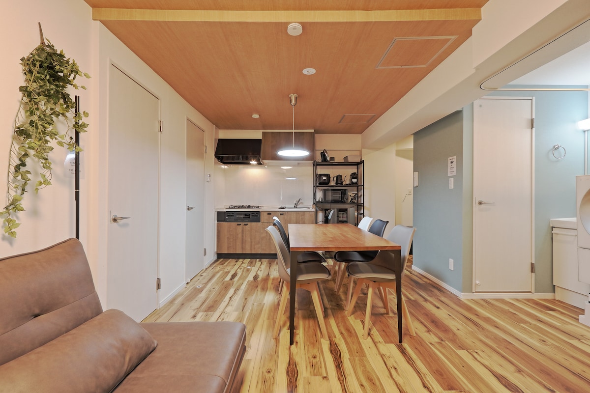 Enjoy a spacious Japanese-modern room with a cozy beds, tatami area, large dining table, kitchen. The room has 2 washbasins, 2 private showers, and 2 toilets, offering great comfort for groups. Located right in front of Tokyo Skytree, just 2 minutes to Solamachi and walking distance to Asakusa, it’s the ideal base for sightseeing. The area has supermarkets, convenience stores, and many restaurants. We have 9 identical rooms available. Experience your best Tokyo stay with us!