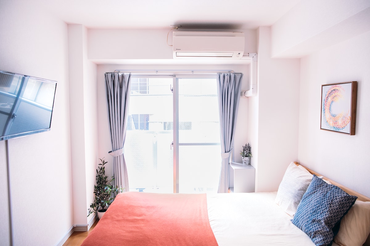 西新宿近35平米一室一厅公寓,沙发床与双人床配置,步行7分钟到地铁,适合4人入住