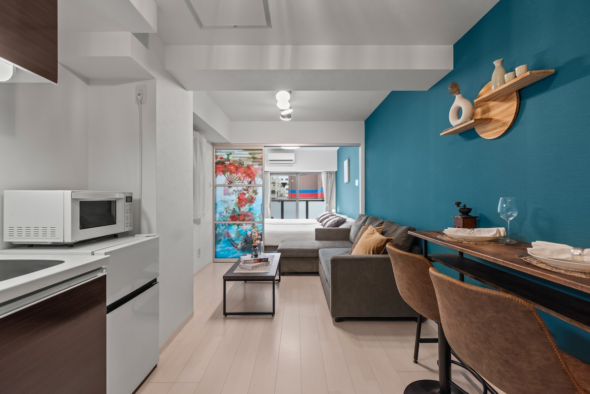 宽敞的1DK 50㎡的公寓,整套独享。 距离JR/大阪地铁天王寺站仅需步行5分钟,交通极其便利。乘地铁5分钟即可到达难波,搭乘电车55分钟即可直达关西机场。JR线路还直通环球影城(USJ)和京都等主要旅游景点。 公寓位于以通天阁和新世界闻名的天王寺中心区域,有JR和大阪地铁的双向交通非常便利,是大阪观光的理想据点。虽然靠近繁华的饮食和购物区域,但公寓位于住宅区,因此完全不用担心噪音问题,可享受安静的住宿体验。 ◆ 特点 安静的住宅街区 轻松前往难波、关西机场、通天阁、黑门市场和京都 步行3分钟即可到便利店 紧邻天王寺动物园 完备的厨房用具 整间公寓独享 轻松的自助入住 免费洗衣机(带烘干功能,附赠免费洗衣液) 齐全的设施用品(洗发水、护发素、沐浴露、浴巾、拖鞋) 可用日语、英语、中文跟客人沟通 配备高速Wi-Fi