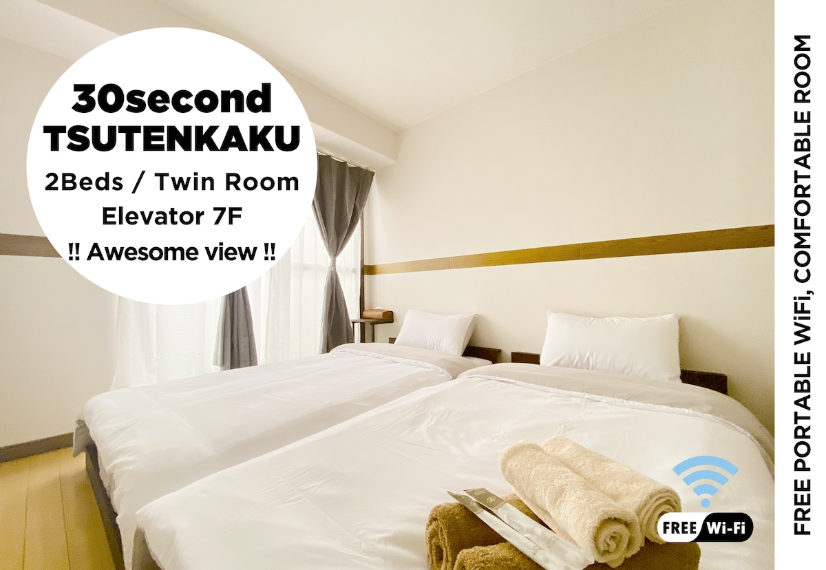 通天阁店/双大床/车站4分/天王寺/大阪市内/新世界USJ难波心斋桥日本桥道顿堀动物园前
