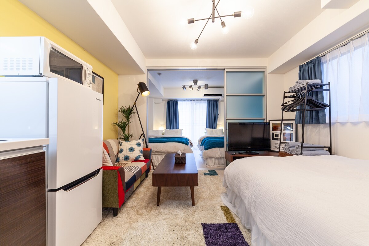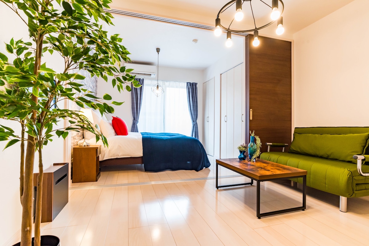 \\Newly opened in 2021// Recommended for family and group of friends. You can enjoy cooking. Two supermarkets and convenience stores in walking distance. 1 unit each floor so entire floor is yours. Please feel home at this apartment. 2bedrooms, 60㎡ 2 subway stations are nearby. You can easily access Namba, airport and other sightseeing spots. Equipped with projector. You can access to Youtube, Netflix, Amazon Prime and other contents.