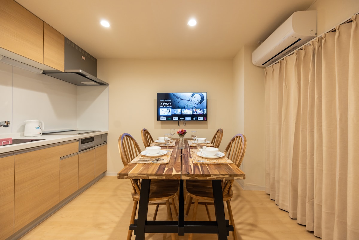 ◆房源位置 位于大阪大国町,步行2分钟可到达地铁站,交通十分便利。 房源邻近难波、道顿堀、心斋桥、天王寺,搭乘地铁仅需一站,也可步行前往多个大阪热门商圈与景点。 距离大国町地铁站约180米,周边有木津市场、难波八坂神社等大阪人气打卡地点,观光、美食、购物都非常方便。 ◆房源空间 适合家庭或小型团队入住的日式公寓,最多可容纳4位客人。 房内配有: 2间双人卧室 独立客厅 独立厨房 独立卫生间与浴室 无论是家庭出游、朋友结伴旅行,还是大阪自由行短住,都非常合适。 ◆交通便利 步行范围内可到达多个车站和线路,包括: 大阪地铁御堂筋线 大阪地铁四桥线 JR环状线 南海线 前往关西机场:可搭乘南海线,约45分钟直达,无需换乘。 前往环球影城(USJ):搭乘JR约25分钟即可到达。 前往难波、道顿堀、心斋桥、天王寺、日本桥等大阪主要区域也都十分方便。 ◆入住须知 入住期间每位客人免费提供1条全新毛巾。 如需额外毛巾,可付费购买,每条200日元。 入住期间不提供房间清洁服务。 为避免影响邻居,晚上10点后请保持安静。 大楼内全面禁烟。 如需吸烟,请前往1楼门外自动贩卖机附近,并请勿乱丢烟蒂。