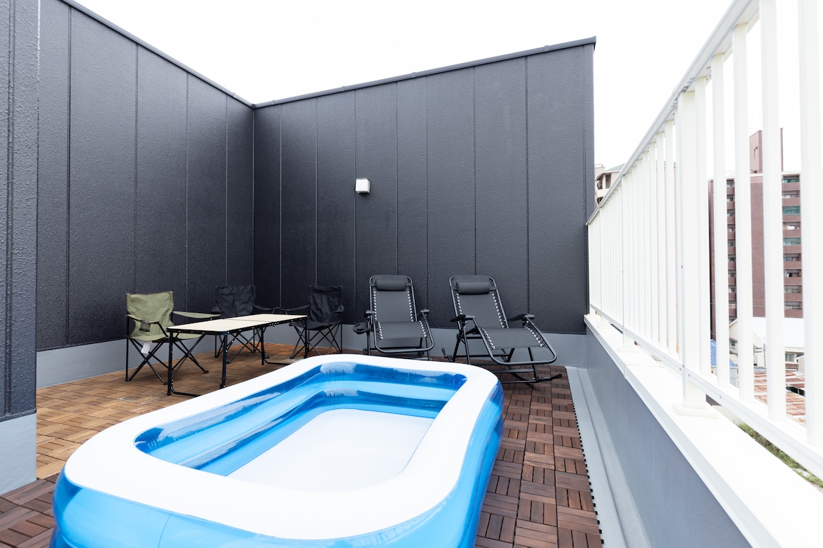 有顶层露台游泳池 南海新今宫站7分钟 地铁花园町站3分钟 到USJ30分钟 再过5分钟