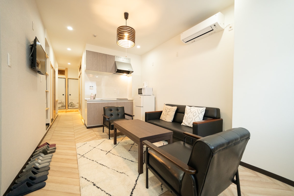 大阪日本桥车站步行3分钟,1LDK和室/2床,步行可到达黑门市场,道顿崛,心斋桥,美食应有尽有
