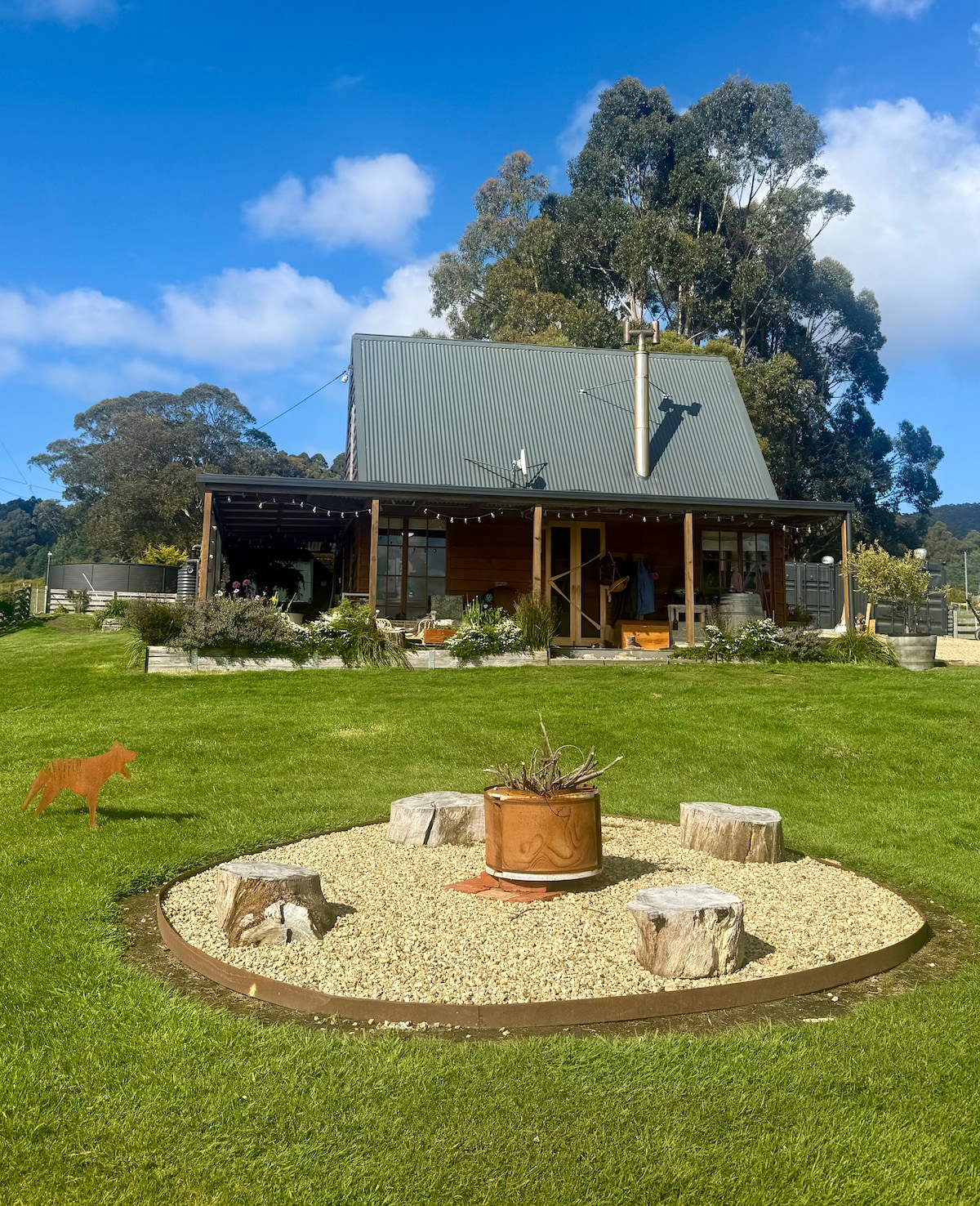 Nestled in an olive grove with views over Bruny Island’s famous Fluted Cape, our yurts offer the ultimate romantic glamping experience, with private bathroom and cooking facilities and an outdoor bath and fire pit for star gazing. Each yurt is furnished with vintage wares collected from all over the world, an internal wood fire, timber floors, and wool lined walls for cosy nights. Double glazed windows look out over the grove and surrounding forest which wraps 360 degrees around our farm.