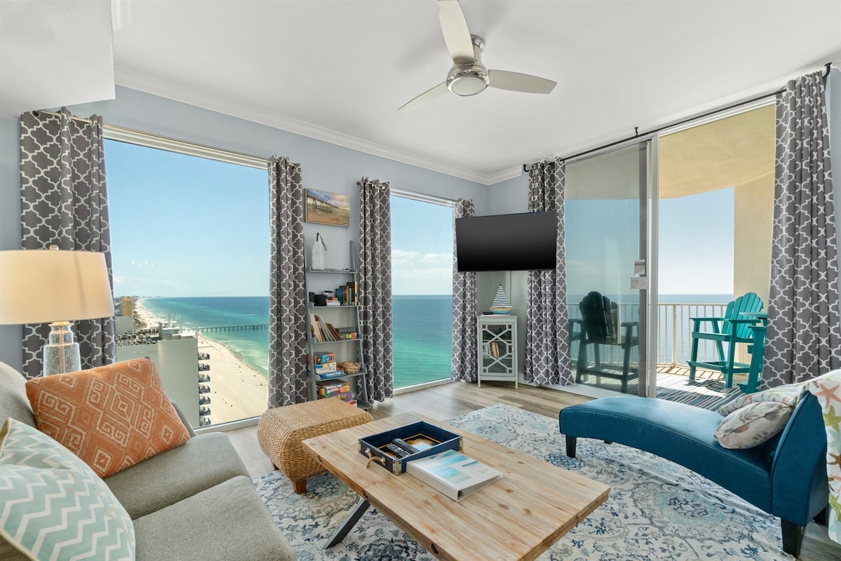 Newly renovated [Sep 2017] modern luxury studio with breath taking gulf views, walking distance to Pier Park and Gulf world and loads of amenities such as heated pool, hot tub, GYM and mini movie theater. This is a studio with a kitchenette that houses a mini fridge, microwave oven, toaster and a mixer if you opt for a home made margarita. Please check out our other 1BR and 2BR listings as well. Building is situated across the street from Sharky's. Property is beach front but not on the beach.