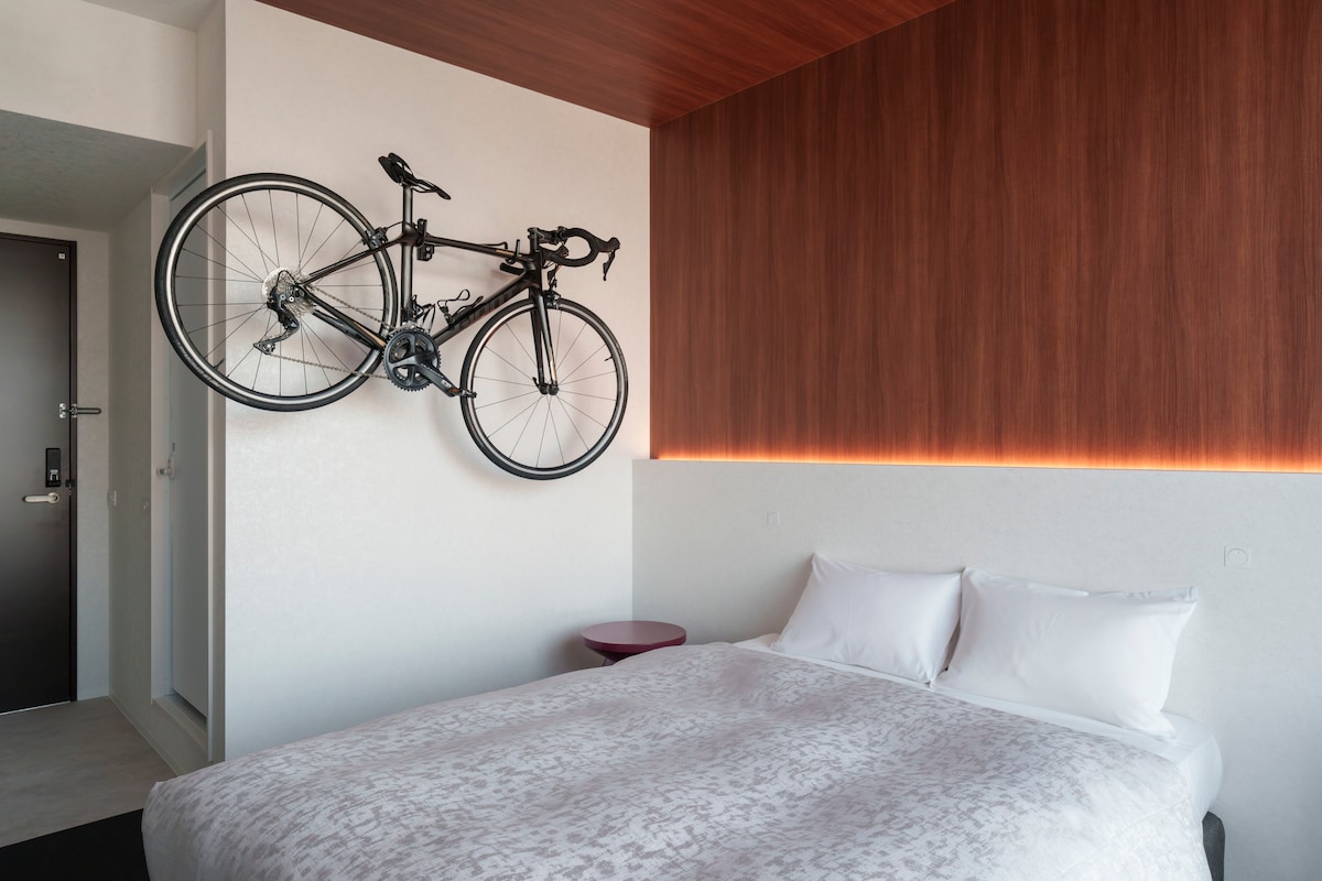 パン職人たちが真心を込めて焼き上げる極上パンと共に、特別なホテル体験を。 厳選された素材と確かな技術が生み出す上質なパンは、一日の始まりを贅沢に彩ります。 朝食では、出来立ての焼きたてパンを、トースターバーでお好みの焼き加減に仕上げてお召し上がりいただけます。 カリッとした食感と香ばしい香りが織りなす至福のひとときを、心ゆくまでご堪能ください。 全部屋モダンで洗練された空間デザインに、古材風の什器を組み合わせた落ち着きのある内装で、優雅な滞在時間を演出いたします。 全室にWiFi、デスク、セーフティボックス、冷蔵庫、バス・トイレを完備。自転車の持ち込みにも対応し、専用のディスプレイハンガーで美しく保管いただけます。 パンの香り漂う洗練された空間デザインと、機能的で使いやすい設備が調和した空間で、贅沢なホテルステイをご体験ください。 部屋の広さ:16~19㎡ ベッドサイズ:ダブル1台 幅145cm 定員:2名 設備:WiFi/デスク/ドライヤー/室内セーフティボックス/湯沸しポット/冷蔵庫/インフォメーション付テレビ/バス・トイレ・ウォシュレット/目覚まし時計