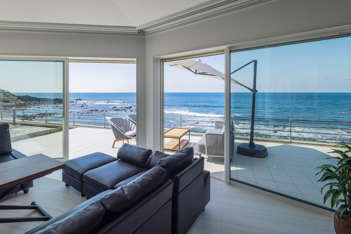 オーシャンビュー |大型犬歓迎 |源泉かけ流し温泉 |80㎡の広々空間|高級家具 |ドッグルーム完備