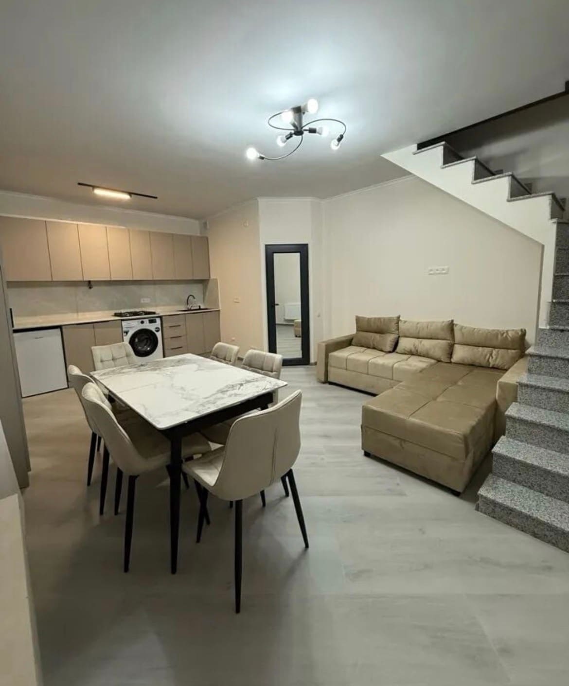 Welcome to our newly remodeled Airbnb in Gyumri! This modern house features 2 bedrooms, a spacious living room/kitchen area, laundry room, 2 bathrooms, and tile floors with granite countertops. Sleep soundly in the king-size bed or 2 single beds, with extra sleeping space on the sofa bed. Enjoy outdoor BBQs and indoor/outdoor sitting areas. Relax in the huge backyard with a new well, secured by a metal gate, full garage. Experience peace and modern comfort in this open floor plan retreat.