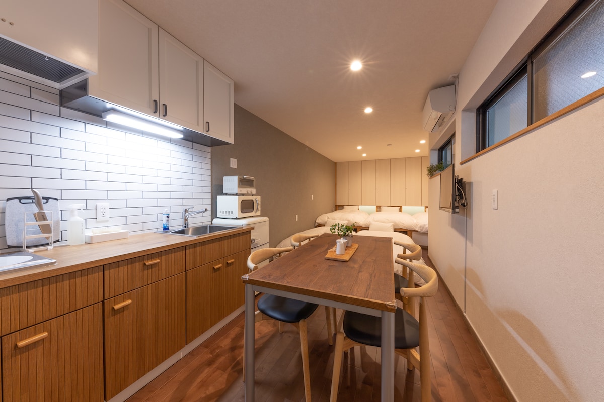 Experience the epitome of luxury on the second floor of a stylish condominium, ideally situated for exploring the beautiful city of Kanazawa. With a mere 9-minute walk from Kanazawa Station and a convenient 3-minute stroll to the renowned Omichoichiba Market, accessibility is unparalleled. The dining room is equipped with a 70-inch large-screen projector, allowing you to enjoy Amazon Prime Video, YouTube, and more.