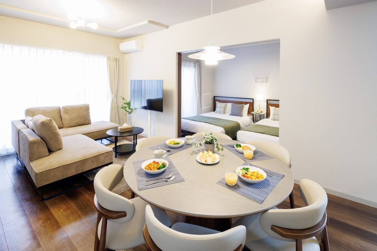 宽敞可住最多6人|欢迎家庭入住|2LDK|札幌薄野|新建不久・干净整洁|清爽且富有高级感