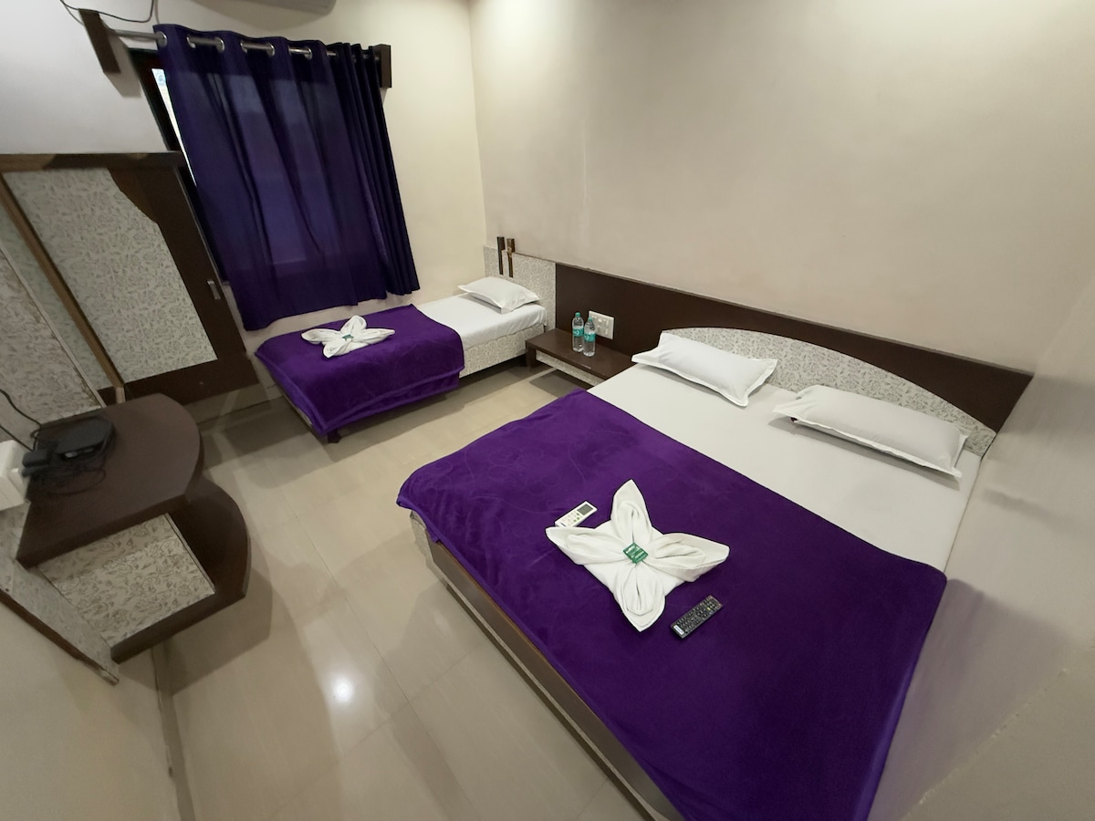 Spacious Triple Bed AC Room just 5 minutes walk from Sai Baba Temple. Ideal for families and groups seeking a comfortable, clean stay. Features air-conditioning, attached bathroom, free Wi-Fi, flat-screen TV, and daily housekeeping. Located near Sai Teerth and Wet N Joy Water Park. Free parking available. Paid airport shuttle on request.