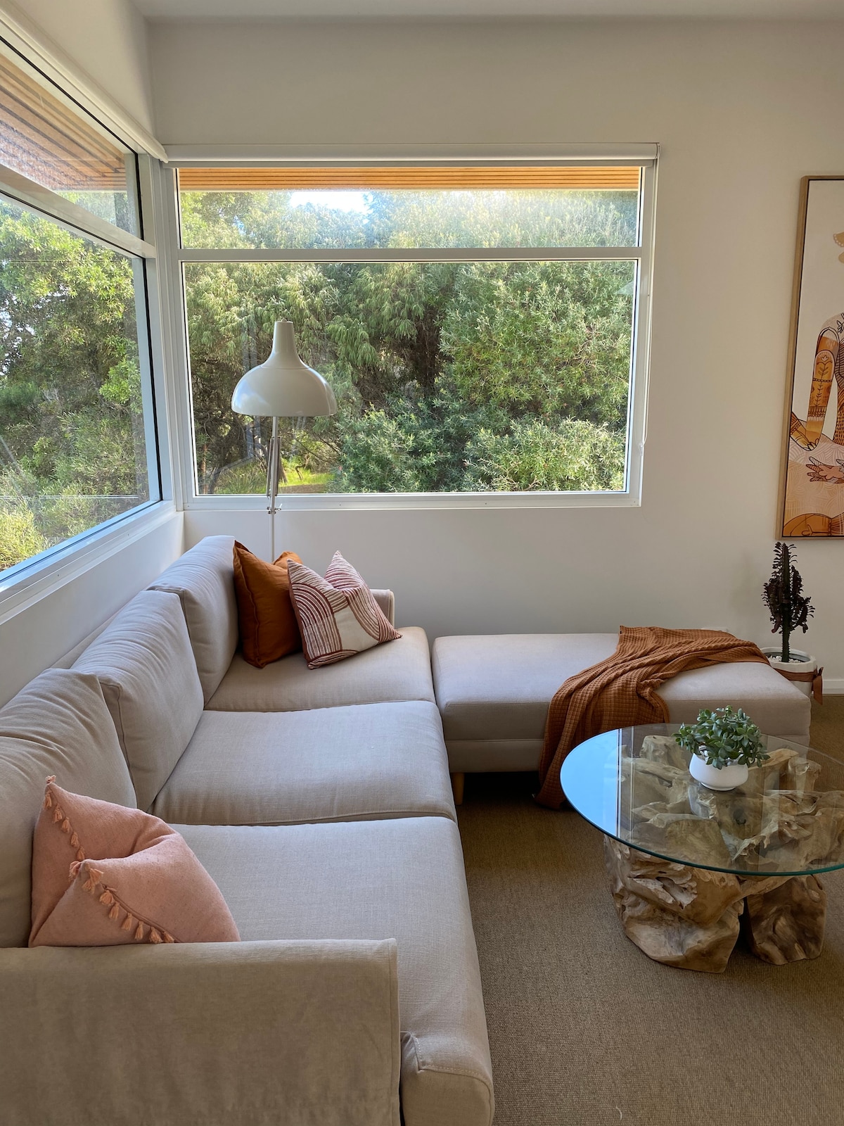 Our home has been architecturally designed and built with Love . The home is very light and bright featuring a 4 meter skylight in the kitchen and a skylight overhead in the shower ... making it feel like you are showering outdoors . French oak floor boards and a unique handcrafted Indian vanity give the home a casual feel . You will feel very at home , in my home . There is full driveway access with undercover parking right at the front door .