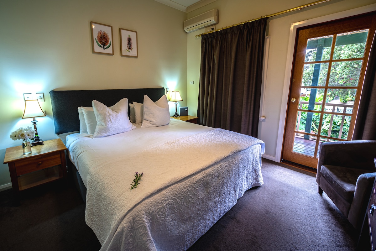 Our beautiful self contained limestone cottage, with your own garden, is within walking distance of town. A day at our cottage includes wildlife, nature, tranquility, relaxation, & wine! Wake up to birdsong, then wonder into town for breakie & a coffee before exploring what the region has to offer. At dusk stroll down to the River passing the local mob of kangaroos. At the end of the day enjoy a BBQ & glass of wine in the tranquility of your garden or tuck up in front of the fire in winter.