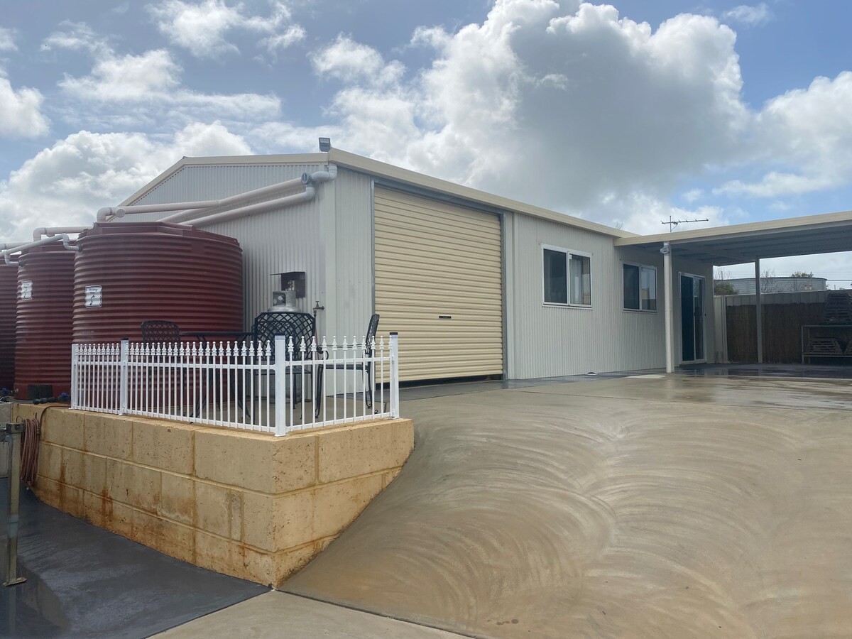Brand new, modern 2-bedroom accommodation offering peaceful country living with stunning views. Located just 20 minutes north of Geraldton, close to Coronation Beach—one of the world’s best spots for kite- and windsurfing, with food van on weekends. Event locations like Nukara Farm and Nabawa Valley Tavern are nearby. Pets are welcome if they bring their own bed and are strictly kept off the furniture. undercover shed space. Relaxing getaway with all the comforts of home.