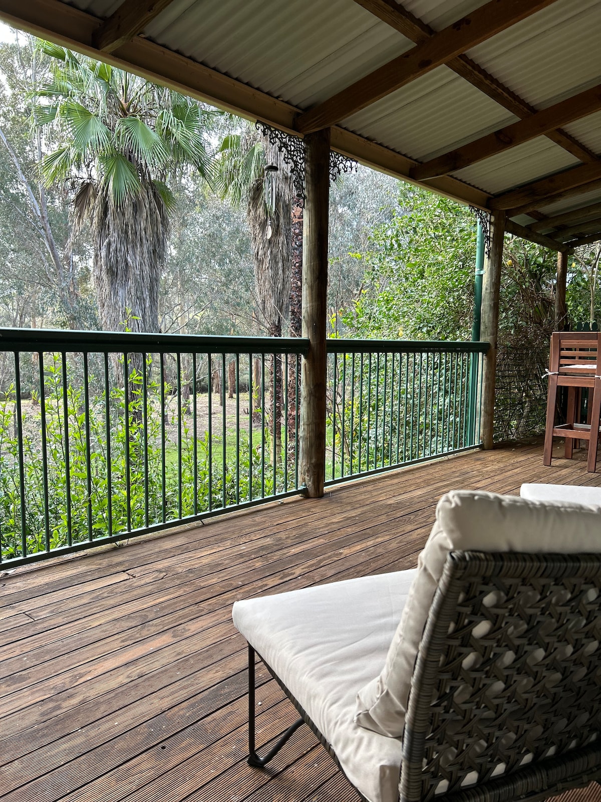 Meet Larry, Pebbles & Flossy our residential pet cow and sheep. They will greet you on your arrival and they love a pat! The Blackwood River is right at your door step with plenty of walk trails and bike tracks to discover. Town centre is within strolling distance but the chalet is located on the edge of a 130acre paddock. There is an adjoining second chalet connected by a locked decking door. Plenty of room with everything you need for that special time away. Sorry NO pets