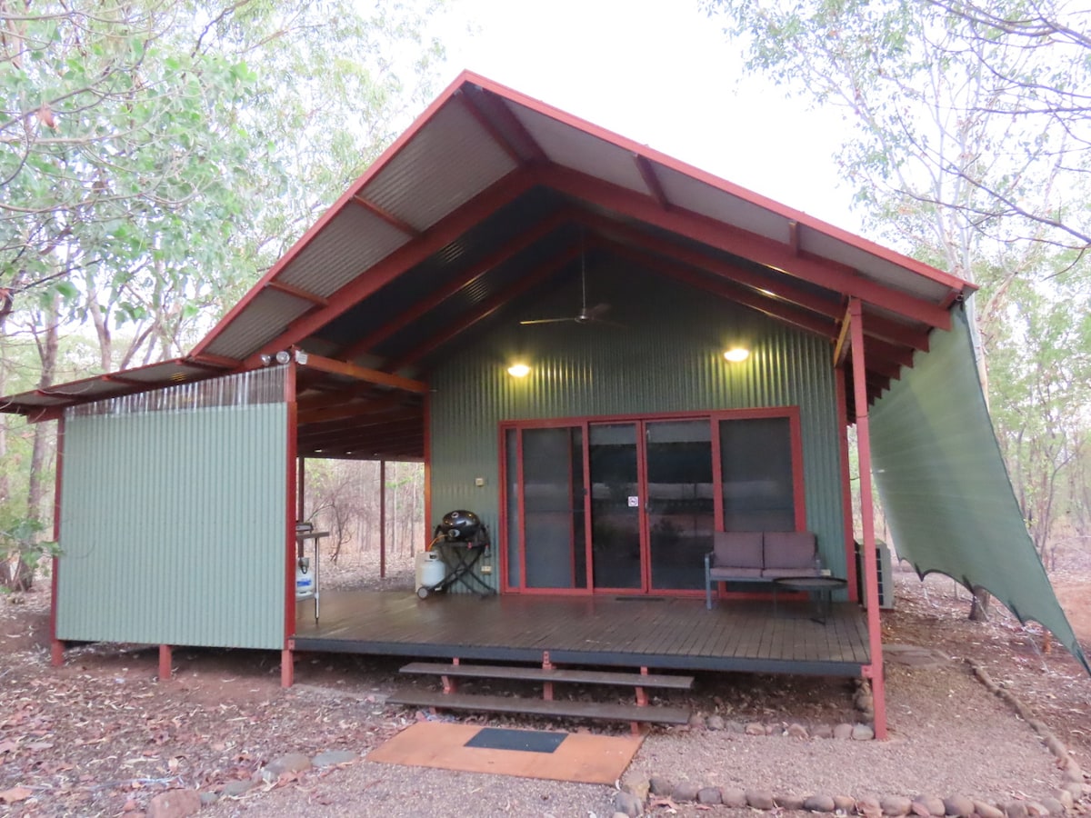 Welcome to our secluded bungalow located just 5km from Kununurra town centre, yet you feel like you're 1000 miles away, surrounded by native trees , wallabies and birds. Everything you need to make yourself feel at home is provided. Inside your airconditioned hideaway is a kitchenette and luxurious bathroom. Outside is a fully equipped kitchen with an air fryer, hot plates, barbecue and even a slow cooker.You will have your own undercover parking and laundy facilities.