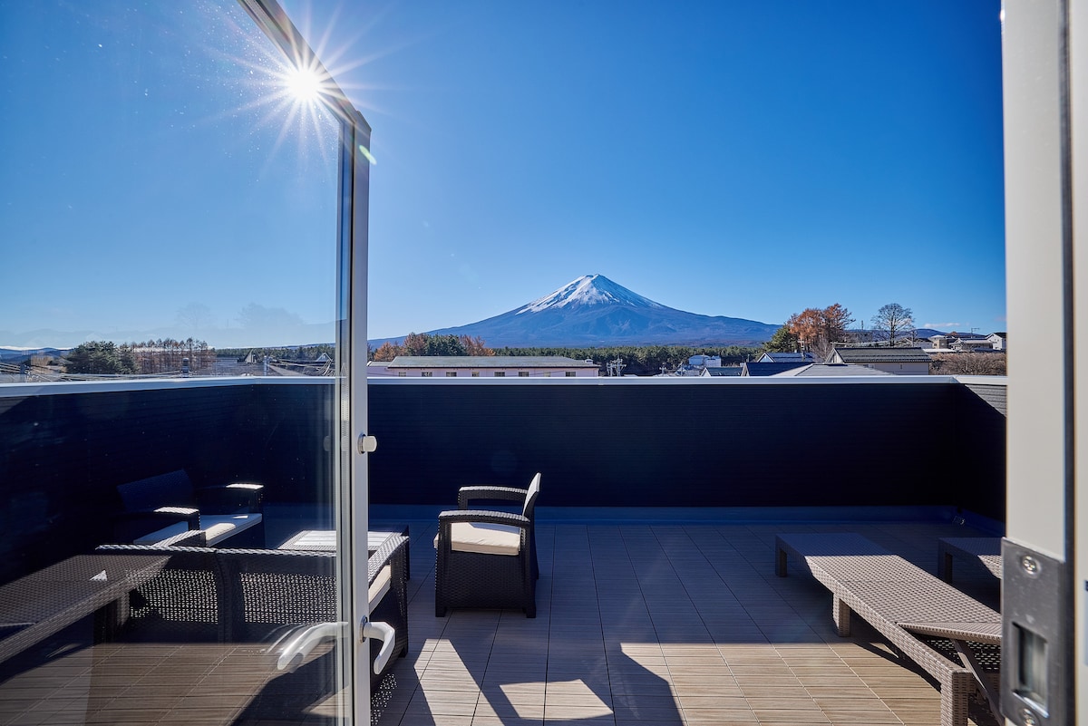 可独享河口湖和富士山绝美景色的整租别墅 宽敞的带屋顶阳台,配备桑拿
