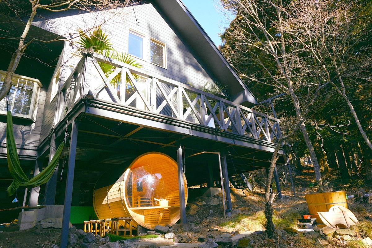 森の中の貸切別荘|ペット|最大8名|サウナやBBQ|The No.10河口湖