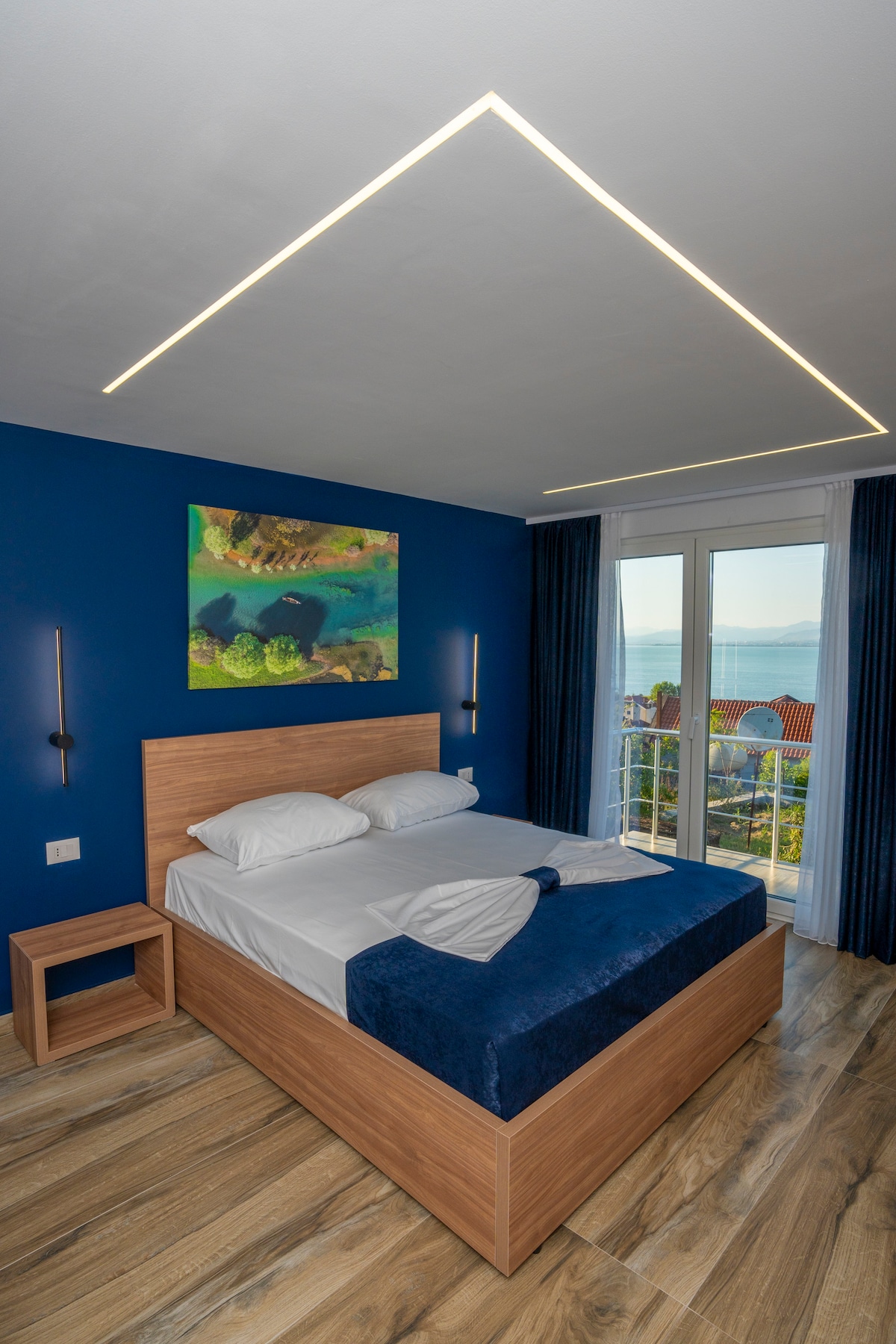 La villa offre una magnifica vista sul lago di Shiroke ed è immersa nella natura. Circondata dalla riserva di pini, ha alle spalle la bellissima montagna di Tarabosh mentre di fronte si estende in tutta la sua bellezza il lago. La vista permette di ammirare sia i tramonti che le albe, di fronte si possono contemplare le Alpi albanesi e in lontananza, dove sorge il sole c'è la città di Shkoder. Situata nella zona residenziale, il centro dista 600 mt ed è raggiungibile tramite strada carrabile.