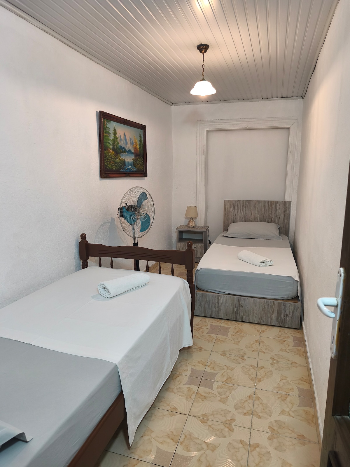 This is an economy room for backpackers, who are typically traveling with their pets. It has two single long beds, night lamps and a standing fan. You have access to kitchen and full toilette with shower.