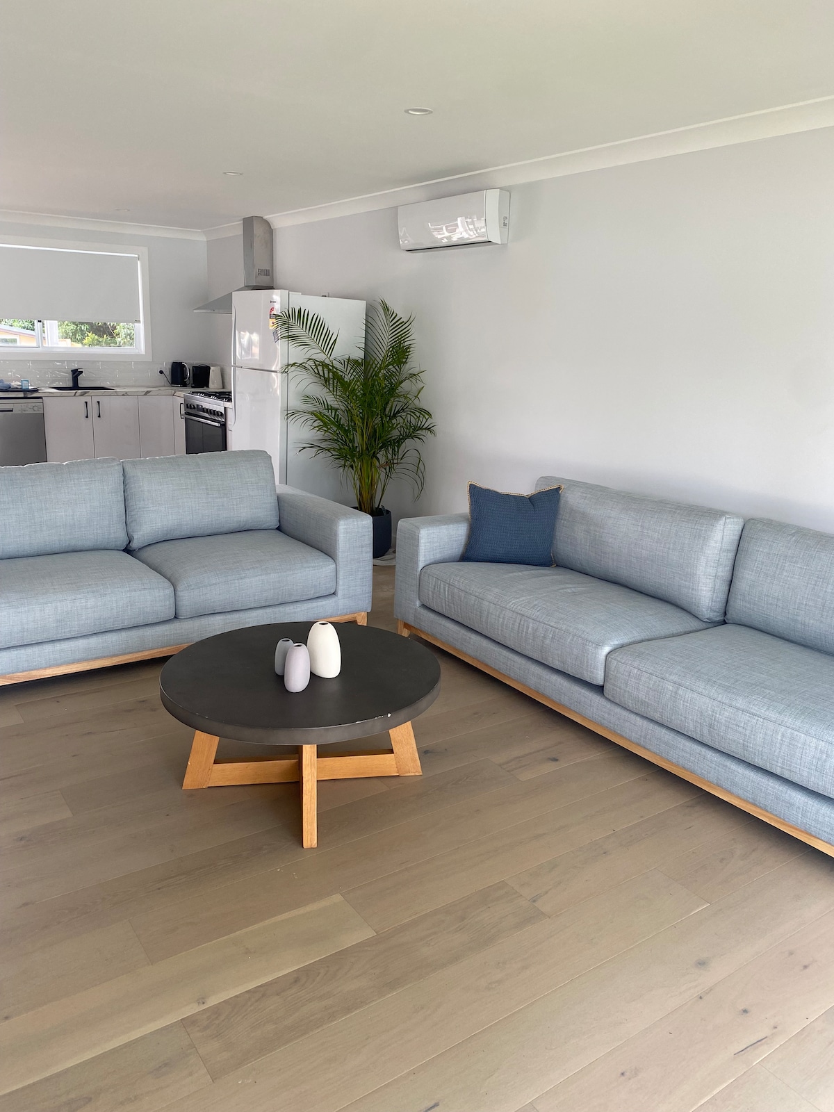 Relax with the family at this spacious, modern 2-bedroom retreat on a peaceful, tree-filled estate. Unwind in the light-filled living area or enjoy bird song from the pergola. Explore the beaches in Port Stephens or Newcastle, play a round of golf, or sample the Hunter Valley’s world-class wine and food less than an hour drive away. The home includes a full kitchen, laundry, Wi-Fi, and plenty of space to stretch out, perfect for families, couples, or friends wanting a relaxed escape.