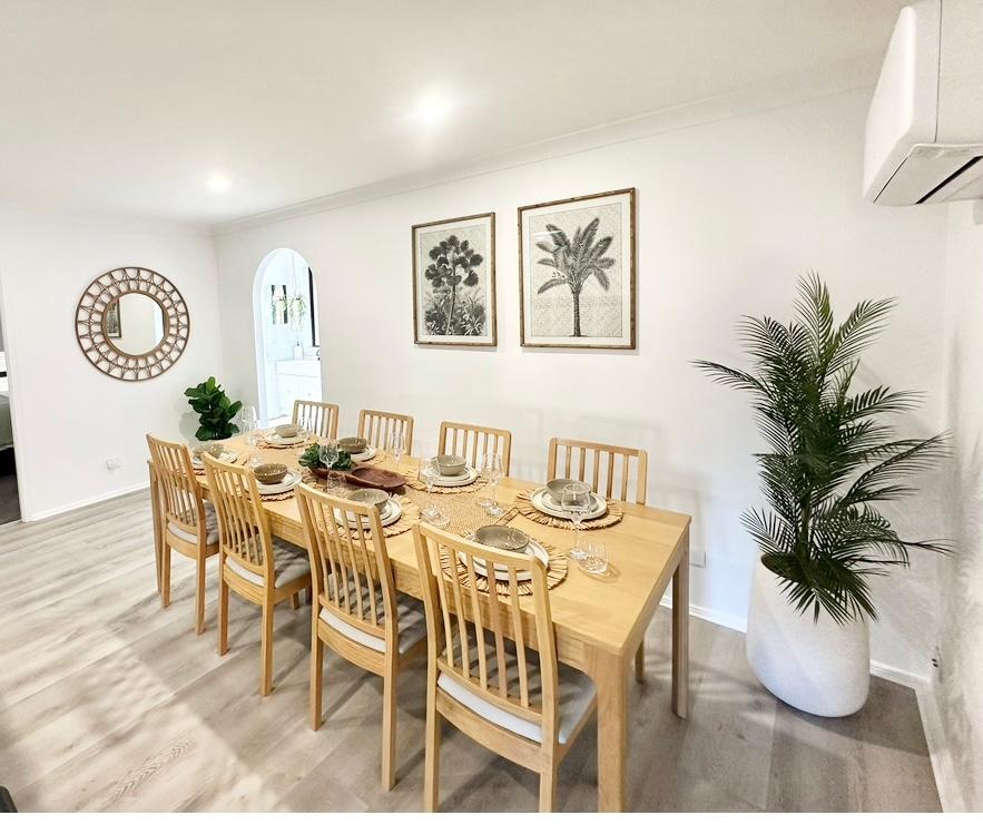 Villa Blanca at Fingal Bay is a newly updated beach house, providing a relaxed aesthetic and is ideal to unwind and enjoy the quiet location of Fingal Bay. Located just a 6 minute walk to the beach and cafes, the house is split over two levels which allows families to have their own sleeping spaces. With a vast outdoor area which opens to a large in ground pool and backyard, you could spend hours just relaxing at home or enjoy the amazing attractions that Port Stephens has to offer.