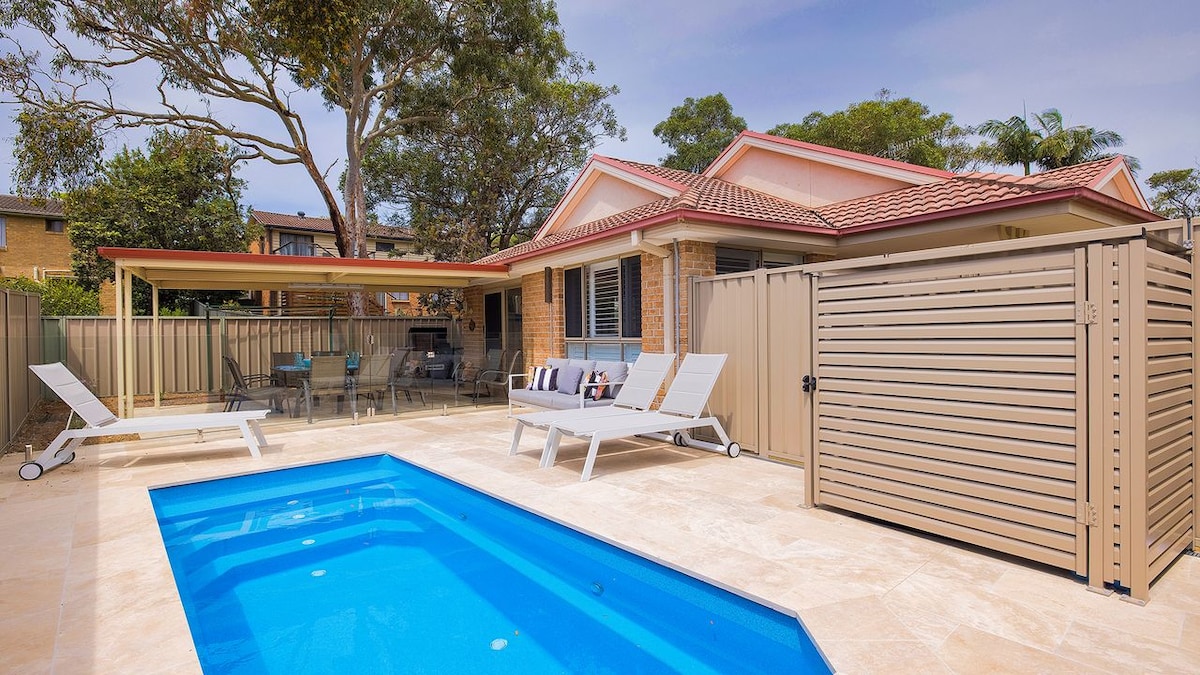 • 2025 Airbnb Australian Host Awards - Finalist: Best Family Friendly Stay • A large resort style house with a heated salt water pool, fire place and ducted air. This spacious home is situated in an ideal location in stunning Shoal Bay. The shopping and restaurant strip (including Shoal Bay Country Club) is just a ten min walk away. Wreck Beach is a short stroll from the backyard of the property. Mt Tomaree as well as Zenith and Box Beach can also be accessed by foot from the backyard.