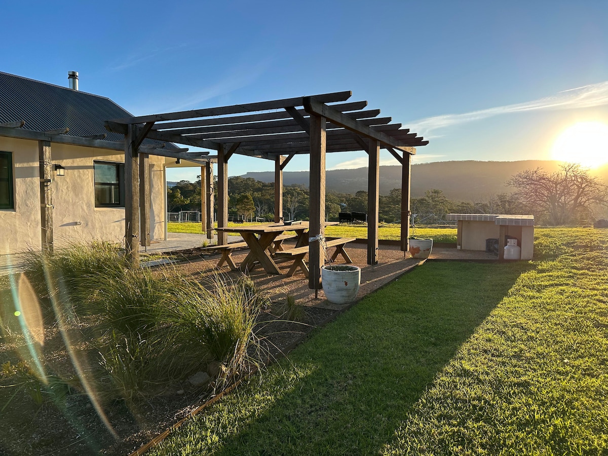 ‘The Stables @ Kookaburra House', is a unique and beautifully appointed barn style cottage located in a private setting amongst the tranquil country side of Kangaroo Valley. 5 km from Kangaroo Valley village and 1 km from the golf club. The Stables includes a large open fireplace, well appointed open plan country kitchen, spacious dining and lounge areas, outdoor fire pit, spacious grounds and breathtaking views of the valley from the outdoor furnished deck. Breakfast staples are provided.