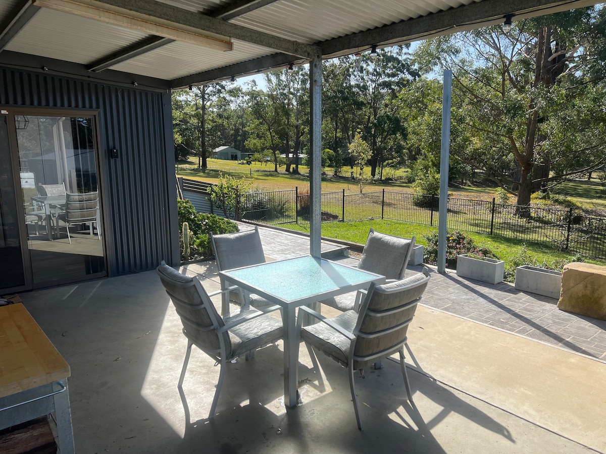 Enjoy this private oasis directly opposite Berry Showground and pool. On a peaceful, wide street in yet central to all Berry has to offer (a flat easy walk to the Queen st shops) A luxurious king bed, full kitchen with an induction stove and oven, private laundry with washing machine and heat pump dryer, back and side deck. Daikin reverse cycle air conditioner as well as glamorous Art Deco style ceiling fans. All windows/doors are double glazed for excellent sound and temperature regulation.