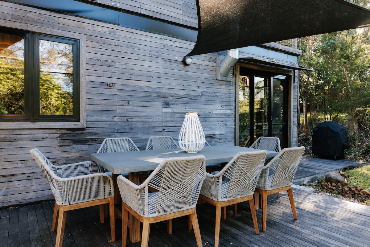 Brand new architect designed studio apartment. Situated on the shores of the beautiful St Georges Basin, this stunning apartment sleeps 2 guests and is the ideal coastal getaway. Kayaking, nature walks, bike trails are all on your doorstep ( two fully equipped kayaks provided ) A 1 min drive will see you either at the boat ramp or the large IGA/bottle shop. The boutique town of Huskisson/Jervis Bay/Boodaree National Park, Hyams beach are a mere 10 minute drive from the studio.