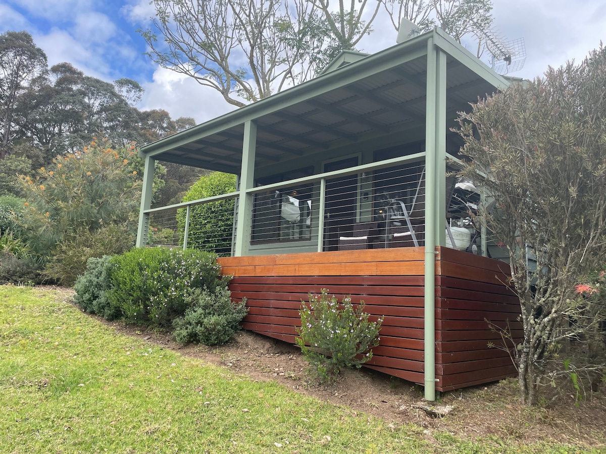 ARUNA Cabins provide the ultimate off-grid experience. Nestled amongst the Australian Scribbly Gums, it offers a bush view, down to the River. If you want to get as far as possible from the bustling world, the ARUNA cabin is for you. Custom built for their bush location, our cabins provide a stylish and snug escape. They are completely off grid so you can ensure your total freedom from the everyday.